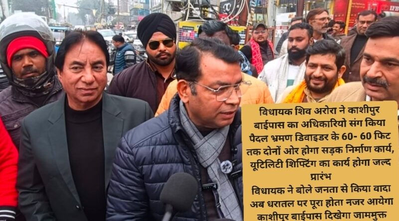 विधायक शिव अरोरा ने काशीपुर बाईपास का अधिकारियो संग किया पैदल भ्रमण डिवाइडर के 60- 60 फिट तक दोनों ओर