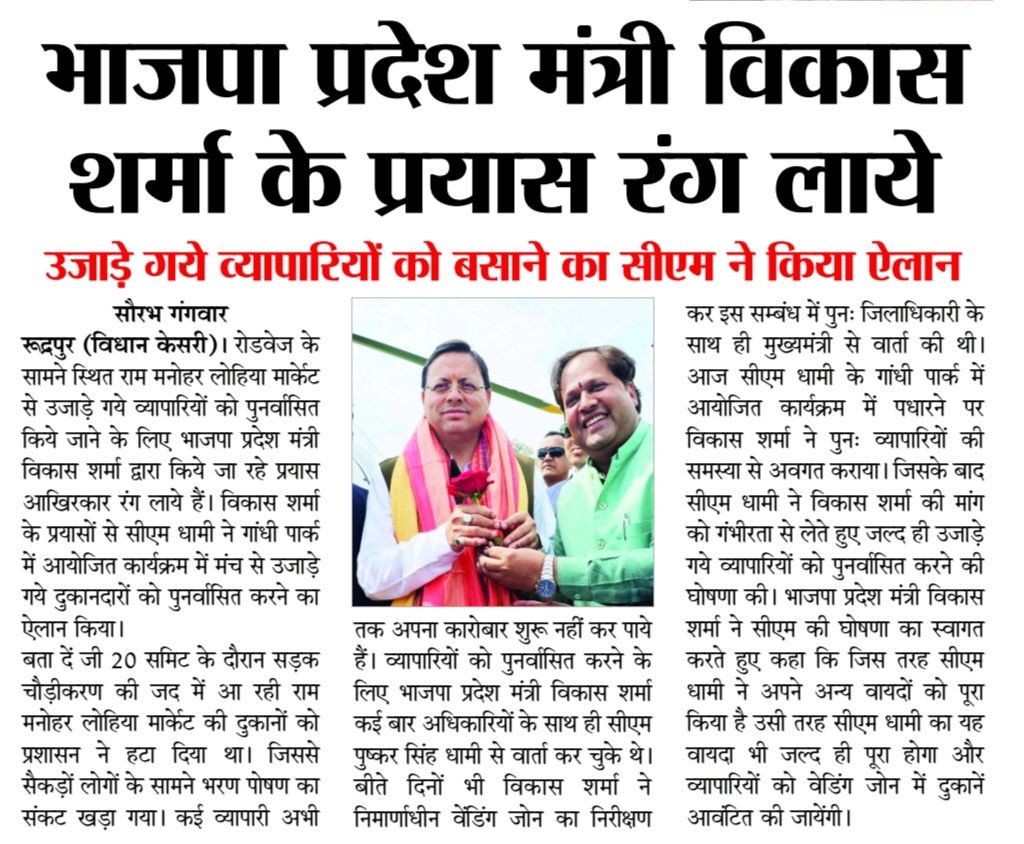 प्रदेश सहसंयोजक भारत भूषण चुघ ने मुख्यमंत्री पुष्कर सिंह धामी को सौंपा ज्ञापन