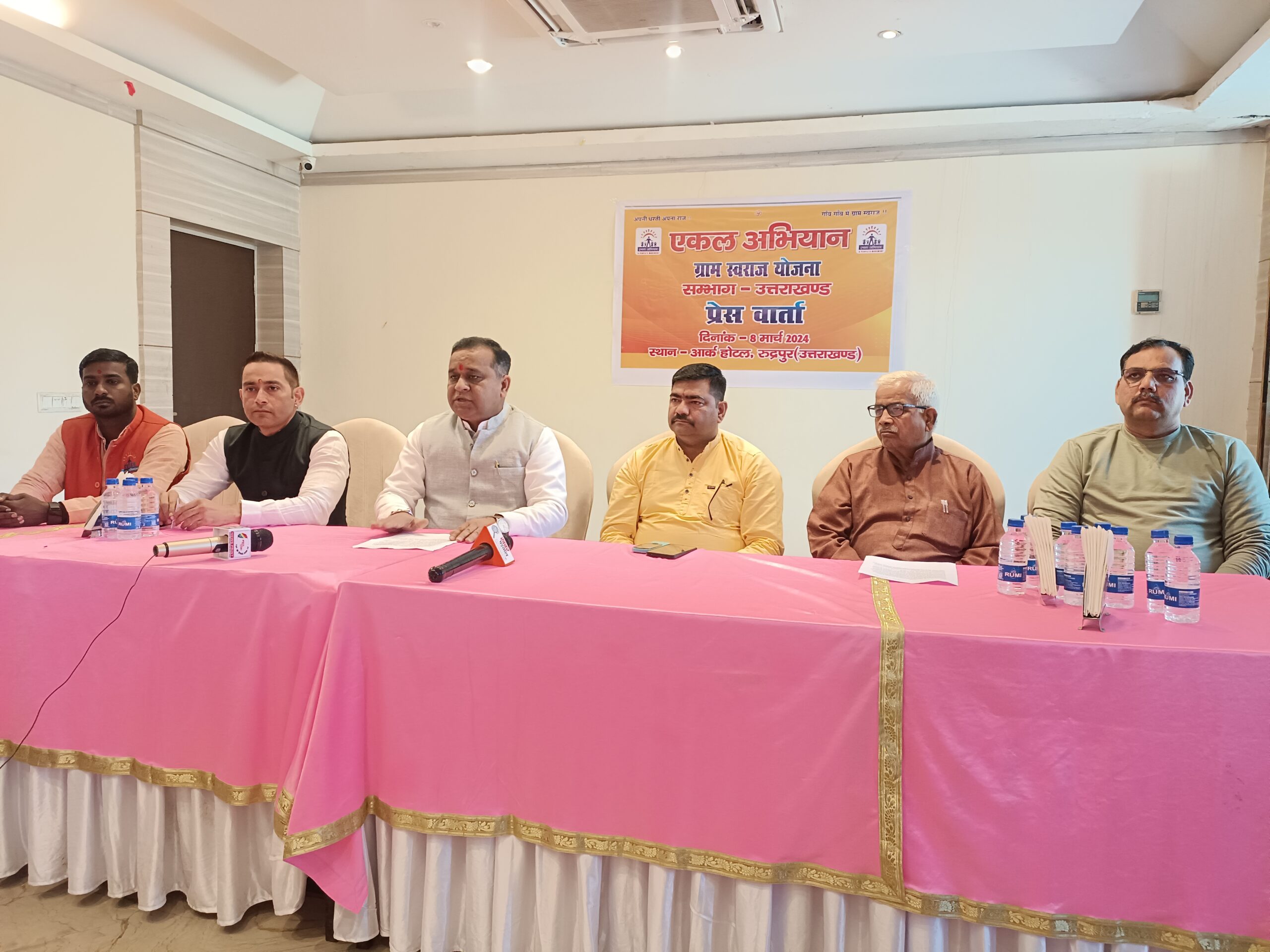 रुद्रपुर। ग्राम स्वराज योजना के प्रदेश संयोजक विनय बतरा के नेतृत्व में संदेशखाली पश्चिम बंगाल में हुए महिलाओं के उत्पीड़न के विरोध में आज रामपुर रोड स्थित एक होटल में पत्रकार वार्ता की गई अभ्युदय क्लब के प्रदेश खेल प्रभारी भारत भूषण चुघ ने कहा कि ग्राम स्वराज संपूर्ण भारतवर्ष में आदिवासी ,वनवासी समाज के बीच में ग्रामवासी के दर्द को स्वर देने का कार्य कर रहा है ,किसी भी प्रकार से ग्राम वासियों का उत्पीड़न या शोषण ना हो इसके लिए समाज में जागरूकता आनी चाहिए।