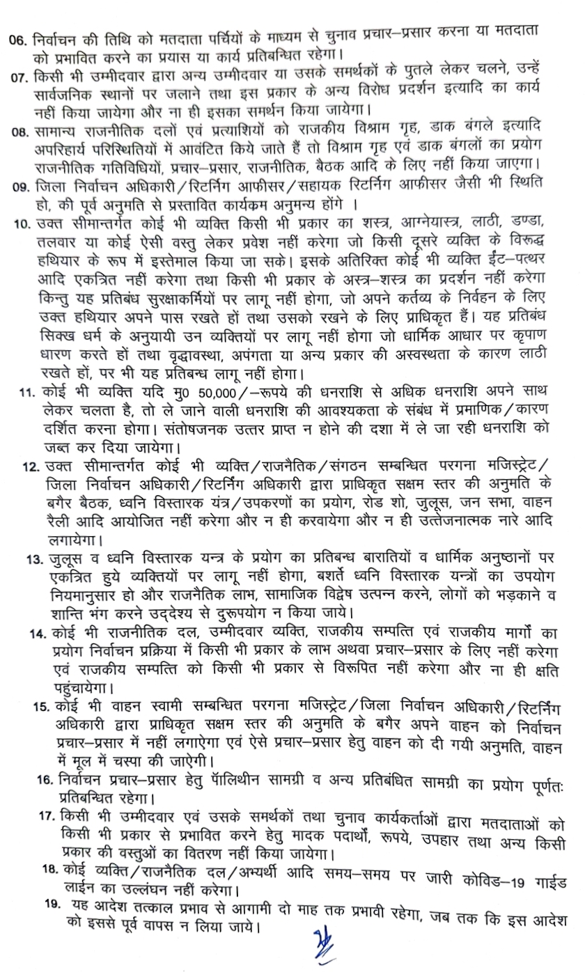 उन्होने कहा कि बैरिकेटिंग के साथ-साथ साईन बोर्ड भी लगाये ताकि किसी को अनावश्यक ईधर-उधर भटकना न पड़े। उन्होने एसएसपी को नामांकन के दौरान पर्याप्त सुरक्षा व्यवस्था कराने के निर्देश भी दिये।