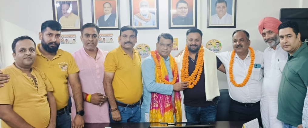 व्यापारी नेता हिमांशु मिड्ढा हुए विधायक शिव के विधायक कार्यालय पर माला पहनाकर शिव अरोरा ने दिलाई भाजपा की सदस्यता