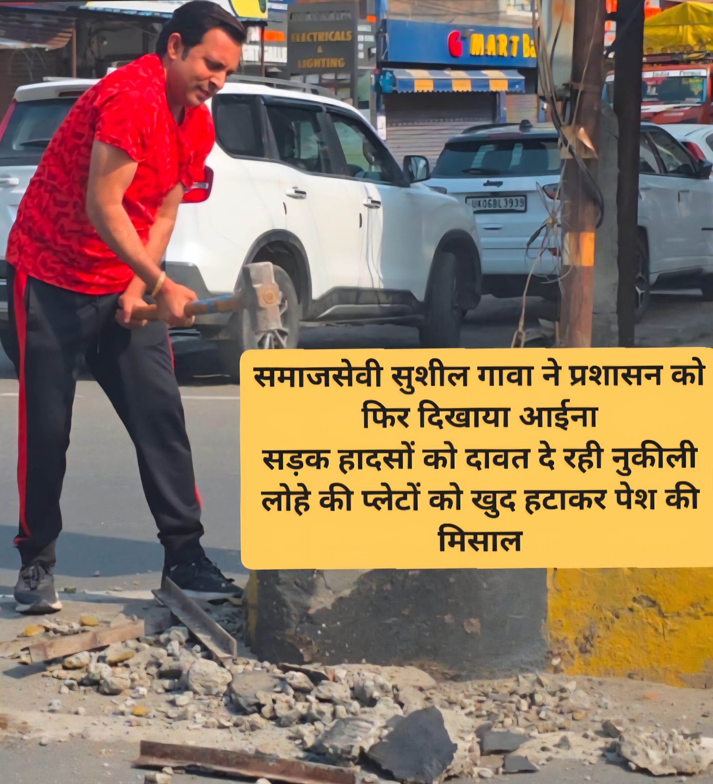 समाजसेवी सुशील गावा ने प्रशासन को फिर दिखाया आईना सड़क हादसों को दावत दे रही नुकीली लोहे की प्लेटों को खुद हटाकर पेश की मिसाल