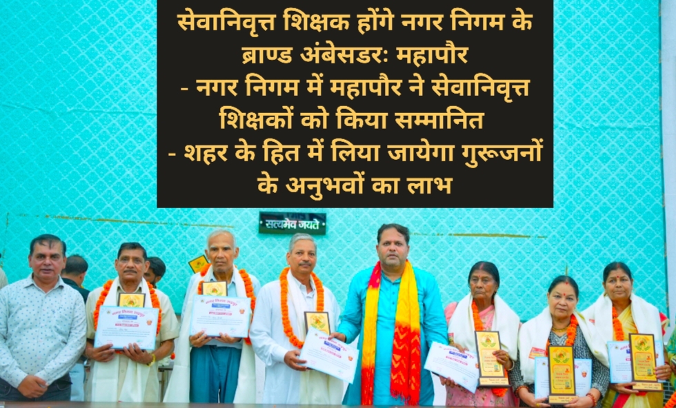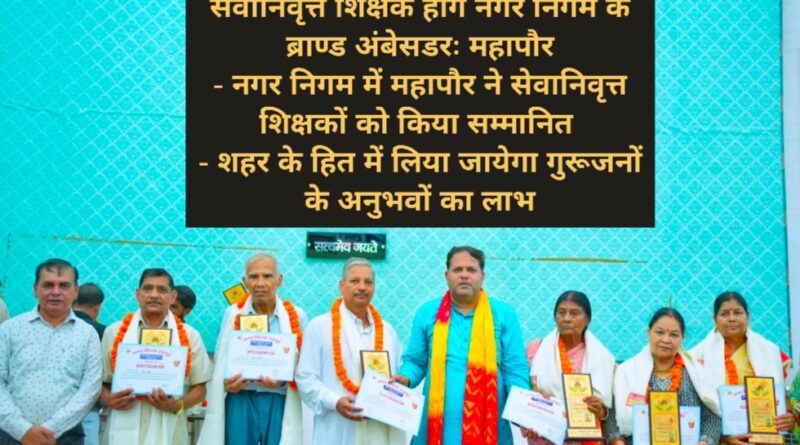 सेवानिवृत्त शिक्षक होंगे नगर निगम के ब्राण्ड अंबेसडरः महापौर – नगर निगम में महापौर ने सेवानिवृत्त शिक्षकों को किया सम्मानित – शहर के हित में लिया जायेगा गुरूजनों के अनुभवों का लाभ