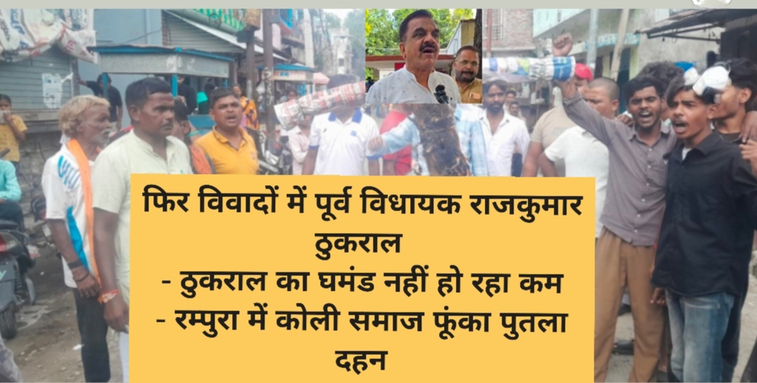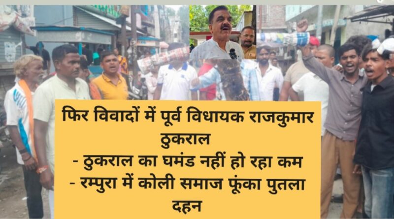 फिर विवादों में पूर्व विधायक राजकुमार ठुकराल – ठुकराल का घमंड नहीं हो रहा कम – रम्पुरा में कोली समाज फूंका पुतला दहन
