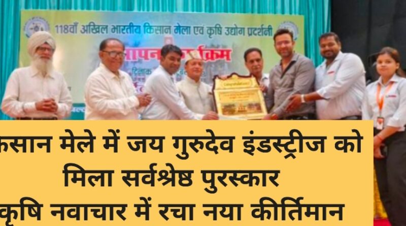 किसान मेले में जय गुरुदेव इंडस्ट्रीज को मिला सर्वश्रेष्ठ पुरस्कार कृषि नवाचार में रचा नया कीर्तिमान