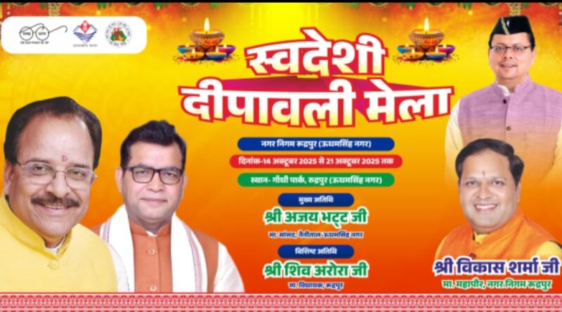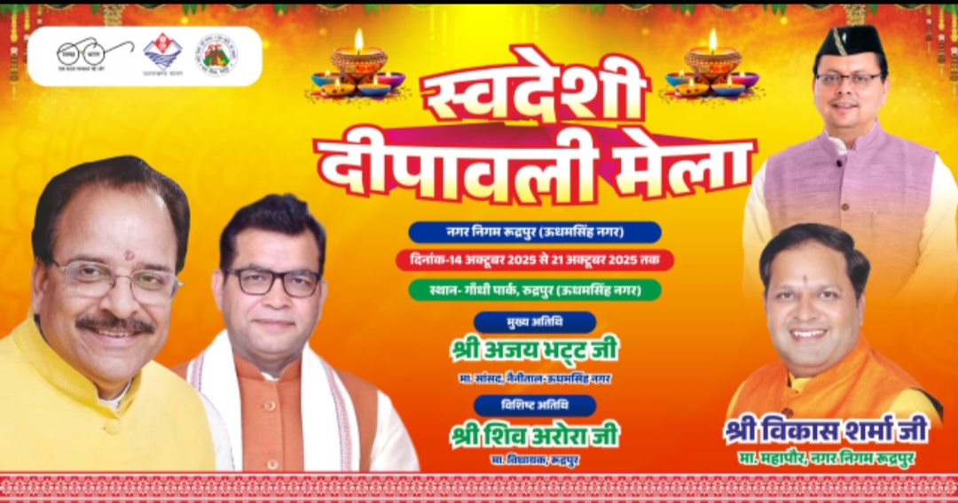 रूद्रपुर। नगर निगम द्वारा पहली बार गांधी पार्क में आयोजित स्वदेशी दीपावली मेला अब पूरे यौवन पर है। 14 अक्टूबर से शुरू हुआ यह मेला 21 अक्टूबर तक चलेगा, जिसमें हर दिन सांस्कृतिक प्रस्तुतियों और स्वदेशी उत्पादों की रौनक देखने को मिल रही है। आज मेला और भी खास हो जाएगा जब पूर्व केंद्रीय मंत्री व वर्तमान सांसद अजय भट्ट बतौर मुख्य अतिथि शाम को मेले में पधारेंगे। उनके साथ विधायक शिव अरोरा विशिष्ट अतिथि के रूप में मौजूद रहेंगे। इस आयोजन में स्थानीय नागरिकों के अलावा, विभिन्न स्कूलों के छात्र-छात्राएं और क्षेत्रीय कलाकार भी भाग ले रहे हैं।