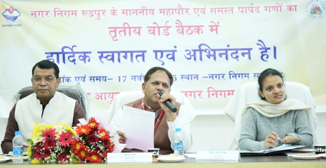 रूद्रपुर। बोर्ड की बैठक में महापौर विकास शर्मा ने पार्षदों द्वारा उठाई गई समस्याओं पर त्वरित एक्शन लिये। महापौर ने कहा कि नगर निगम का हर पार्षद और कर्मचारी उनके परिवार का हिस्सा है और नगर निगम का अभिन्न अंग है। किसी भी जनप्रतिनिधि की अनदेखी बर्दाश्त नहीं की जायेगी। महापौर ने कहा कि आज बैठक में जो निर्णय लिये गये हैं, वह शहर को एक नई दिशा देंगे। महापौर ने कहा कि मुख्यमंत्री पुष्कर सिंह धामी का मार्गदर्शन लगातार हमें मिल रहा है और नगर निगम लगातार शहर के समग्र विकास में सफल हो रहा है। सभी की मेहनत से रूद्रपुर को विकास के एक मॉडल के रूप में विकसित किया जायेगा। महापौर ने बैठक में कुछ पार्षदों द्वारा विभागों के अधिकारियों द्वारा अनदेखी किये जाने की शिकायत पर कहा कि अगली बार अन्य विभागों के अधिकारियों को भी बैठक में आमंत्रित किया जायेगा। इसके साथ साथ उन्होंने कह कि जनप्रतिनिधि की अनदेखी किसी भी विभाग में होगी तो वह चुप नहीं बैठेंगे। जरूरत पड़ी तो मुख्यमंत्री पुष्कर सिंह धामी से शिकायत की जायेगी। महापौर ने कहा कि आज की बैठक में कई बड़ी समस्याओं के समाधान का मार्ग प्रशस्त हुआ है। जो भी निर्णय आज लिये गये हैं, संभवतः वह अगली बैठक तक पूरे हो जायेगा। महापौर विकास शर्मा ने कहा कि नगर निगम का उद्देश्य शहर में विकास कार्यों को तेज गति से आगे बढ़ाना और नागरिकों को बेहतर सुविधाएँ उपलब्ध कराना है। उन्होंने कहा कि पारित किए गए प्रस्ताव शहर की संरचना और जीवन-स्तर को और बेहतर बनाने में महत्वपूर्ण भूमिका निभाएँगे।