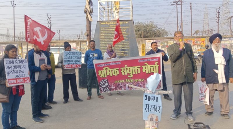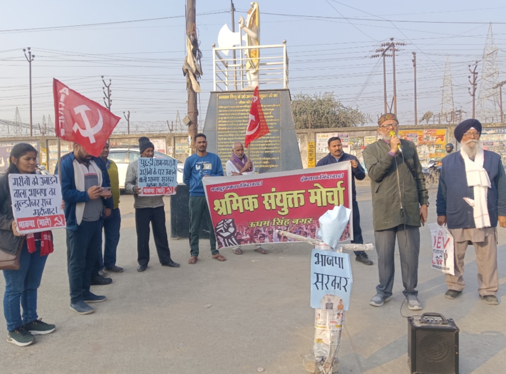 पुछड़ी में गरीबों के घरों पर बुलडोजर के विरोध में श्रमिक संयुक्त मोर्चा का प्रदर्शन