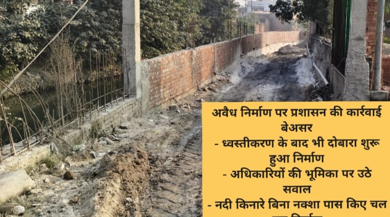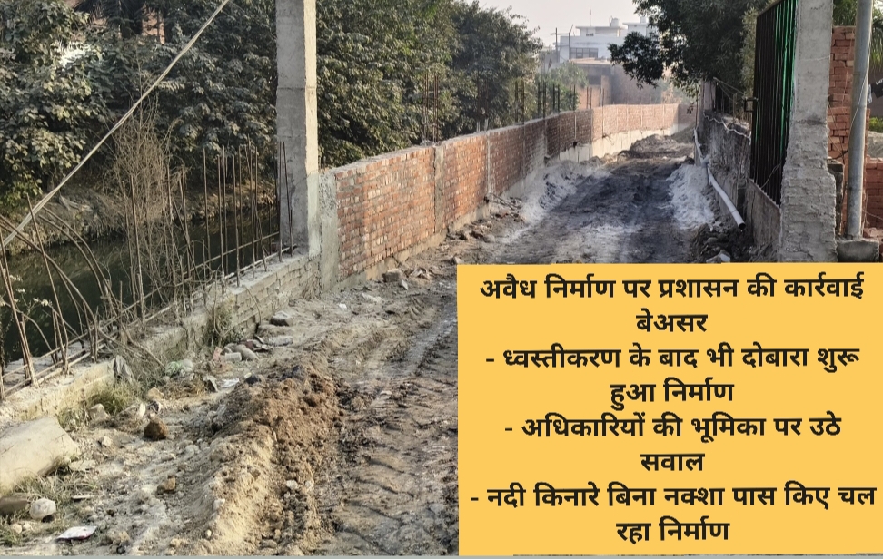 अवैध निर्माण पर प्रशासन की कार्रवाई बेअसर – ध्वस्तीकरण के बाद भी दोबारा शुरू हुआ निर्माण – अधिकारियों की भूमिका पर उठे सवाल – नदी किनारे बिना नक्शा पास किए चल रहा निर्माण