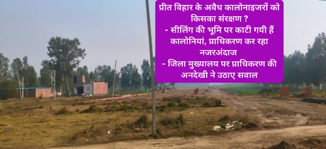 लेकिन जिला मुख्यालय पर स्थित प्रीत विहार में स्थिति बिल्कुल विपरीत दिखाई दे रही है। यहां सीलिंग की पर्याप्त भूमि होने के बावजूद नियमों को ताक पर रखकर अवैध रूप से कालोनियाँ काटी गई हैं, परंतु प्राधिकरण द्वारा किसी भी प्रकार की कार्रवाई नहीं की जा रही। स्थानीय स्तर पर यह चर्चा का विषय बना हुआ है कि जब पूरे जिले में सख्ती है तो फिर प्रीत विहार में यह मेहरबानी क्यों? क्या यहां के कालोनाइजरों को कोई विशेष संरक्षण प्राप्त है?