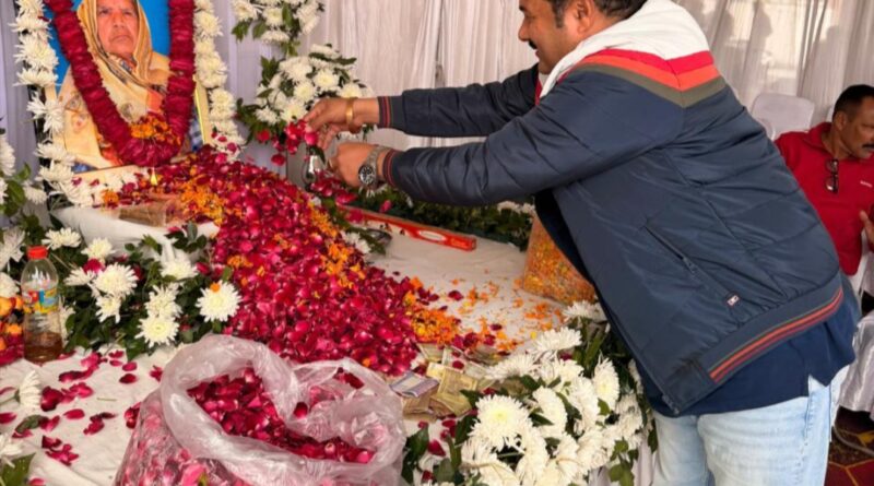 रुद्रपुर। वरिष्ठ भाजपा नेता एवं उत्तराखण्ड आयुष परिषद के अध्यक्ष डॉ. केसी चंदौला ने शिक्षक संघ के जिलाध्यक्ष गुलाब सिंह सिरोही के निवास पर पहुंचकर उनकी माताजी एवं स्वतंत्रता संग्राम सेनानी स्वर्गीय हरेराम सिरोही की धर्मपत्नी श्रीमती हरदेवी सिरोही के निधन पर गहरा शोक व्यक्त किया। उन्होंने दिवंगत आत्मा की शांति के लिए प्रार्थना करते हुए श्रद्धांजलि अर्पित की तथा शोकाकुल परिवार को इस कठिन समय में संबल प्रदान करने की कामना की। इस अवसर पर आयोजित श्रद्धांजलि सभा में विधायक शिव अरोरा, किच्छा विधायक तिलकराज बेहड़ सहित अनेक जनप्रतिनिधि, सामाजिक कार्यकर्ता एवं गणमान्य नागरिक उपस्थित रहे।