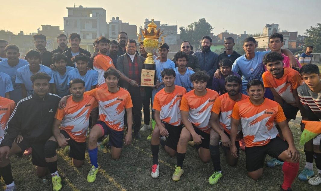 रविंद्र नगर मे आयोजित फुटबाल प्रतियोगिता मे शामिल हुऐ विधायक शिव अरोरा ने फाइनल मैच मे विजय रही शक्तिफार्म की टीम क़ो ट्रॉफी देकर किया सम्मानित