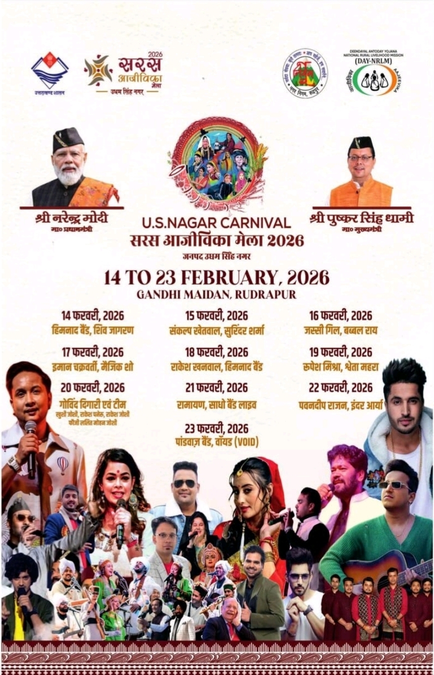 उधमसिंह नगर कार्निवाल सरस आजीविका मेला-2026 का किया शुभारम्भ मुख्यमंत्री पुष्कर सिंह धामी ने 295.21 करोड़ के विकास कार्यो का किया लोकार्पण/शिलान्यास