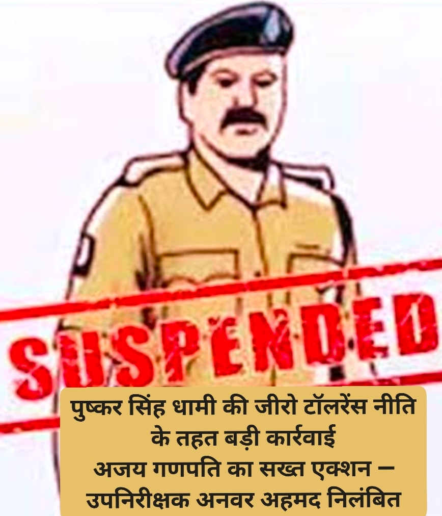 पुष्कर सिंह धामी की जीरो टॉलरेंस नीति के तहत बड़ी कार्रवाई अजय गणपति का सख्त एक्शन — उपनिरीक्षक अनवर अहमद निलंबित