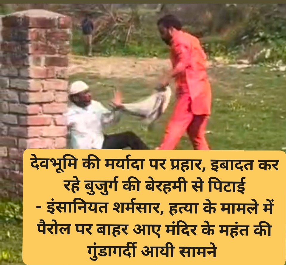 देवभूमि की मर्यादा पर प्रहार, इबादत कर रहे बुजुर्ग की बेरहमी से पिटाई – इंसानियत शर्मसार, हत्या के मामले में पैरोल पर बाहर आए मंदिर के महंत की गुंडागर्दी आयी सामने