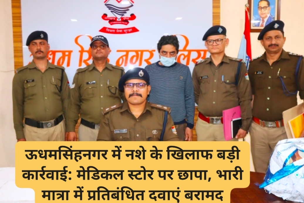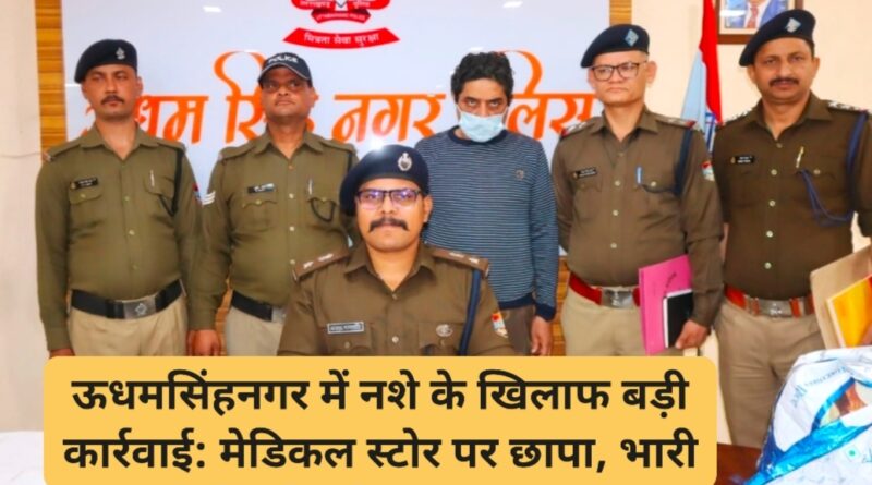 ऊधमसिंहनगर में नशे के खिलाफ बड़ी कार्रवाई: मेडिकल स्टोर पर छापा, भारी मात्रा में प्रतिबंधित दवाएं बरामद