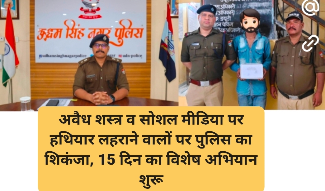 ऊधमसिंहनगर। जनपद में कानून-व्यवस्था को और अधिक सुदृढ़ बनाने और फायरिंग की घटनाओं पर रोक लगाने के लिए वरिष्ठ पुलिस अधीक्षक अजय गणपति ने सख्त रुख अपनाया है। उनके निर्देश पर अवैध शस्त्र रखने तथा सोशल मीडिया पर हथियारों का प्रदर्शन कर दहशत फैलाने वालों के खिलाफ 15 दिन का विशेष अभियान शुरू किया गया है।