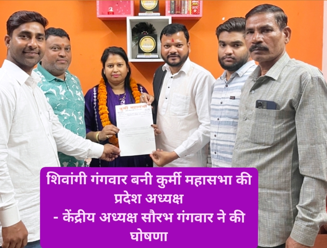 शिवांगी गंगवार बनी कुर्मी महासभा की प्रदेश अध्यक्ष – केंद्रीय अध्यक्ष सौरभ गंगवार ने की घोषणा