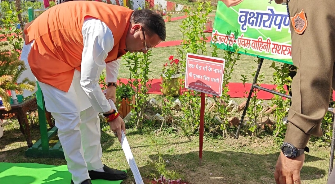 उत्तराखंड के मुख्यमंत्री पुष्कर सिंह धामी ने मंगलवार को चम्पावत स्थित पंचम वाहिनी सशस्त्र सीमा बल (एसएसबी) परिसर में ‘एक पेड़ माँ के नाम’ अभियान के तहत वृक्षारोपण किया।