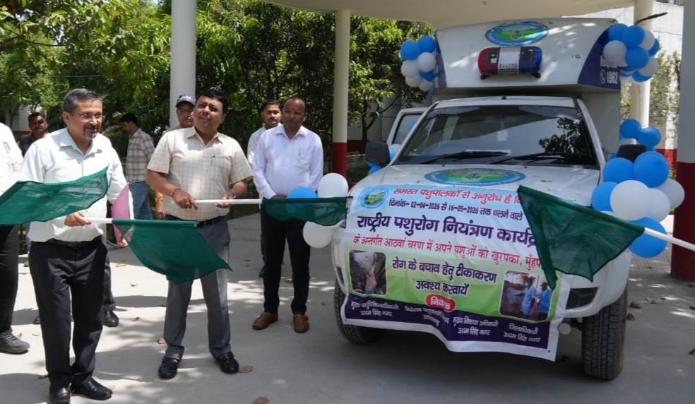 रुद्रपुर। जिलाधिकारी नितिन सिंह भदौरिया ने कलेक्ट्रेट परिसर से पशु रोग निदान एवं टीकाकरण प्रचार-प्रसार वाहन को हरी झंडी दिखाकर रवाना किया। इस अवसर पर उन्होंने बताया कि जनपद में खुरपका-मुंहपका (FMD) रोग के नियंत्रण के लिए 45 दिवसीय विशेष अभियान चलाया जा रहा है, जिसके तहत सभी विकासखंडों में पशु चिकित्सकों द्वारा व्यापक स्तर पर टीकाकरण किया जाएगा।